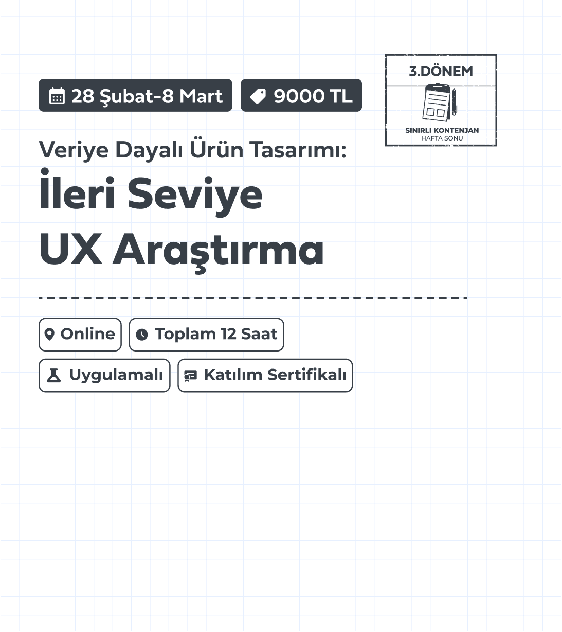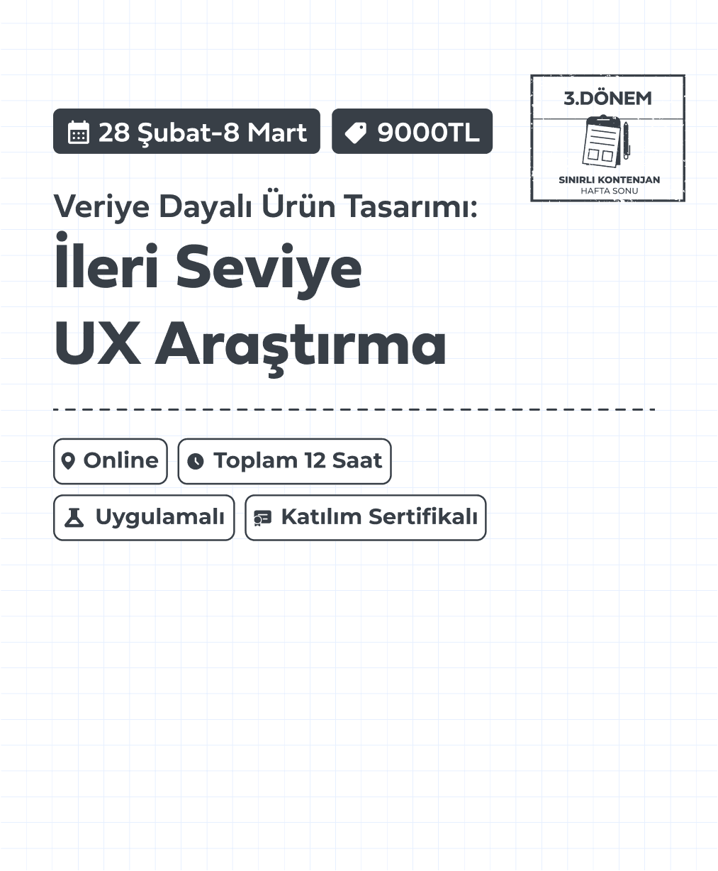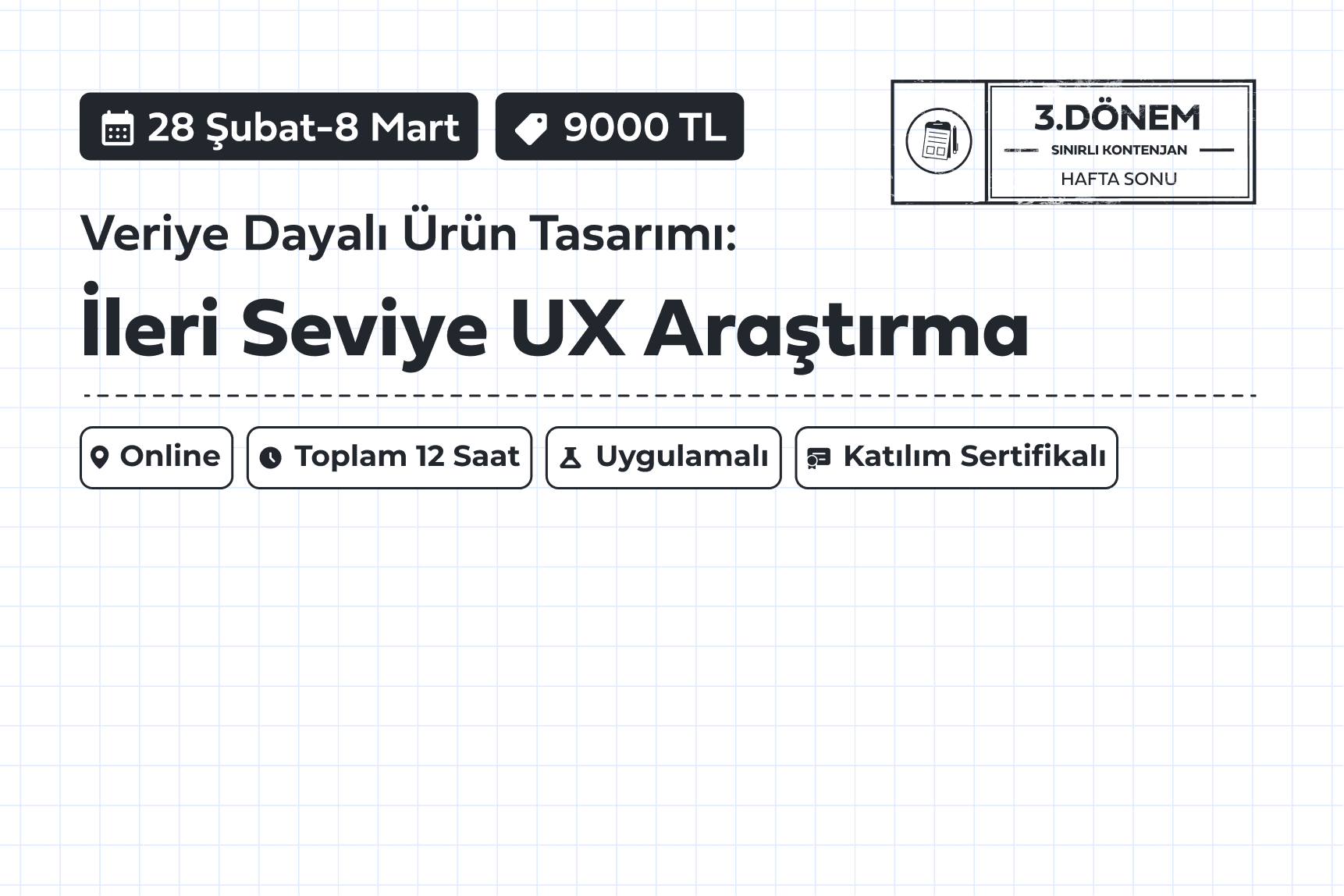 Online | 4 Oturum | Toplam 12 Saat | Hafta Sonu | Katılım Sertifikalı | Mentörlük Destekli